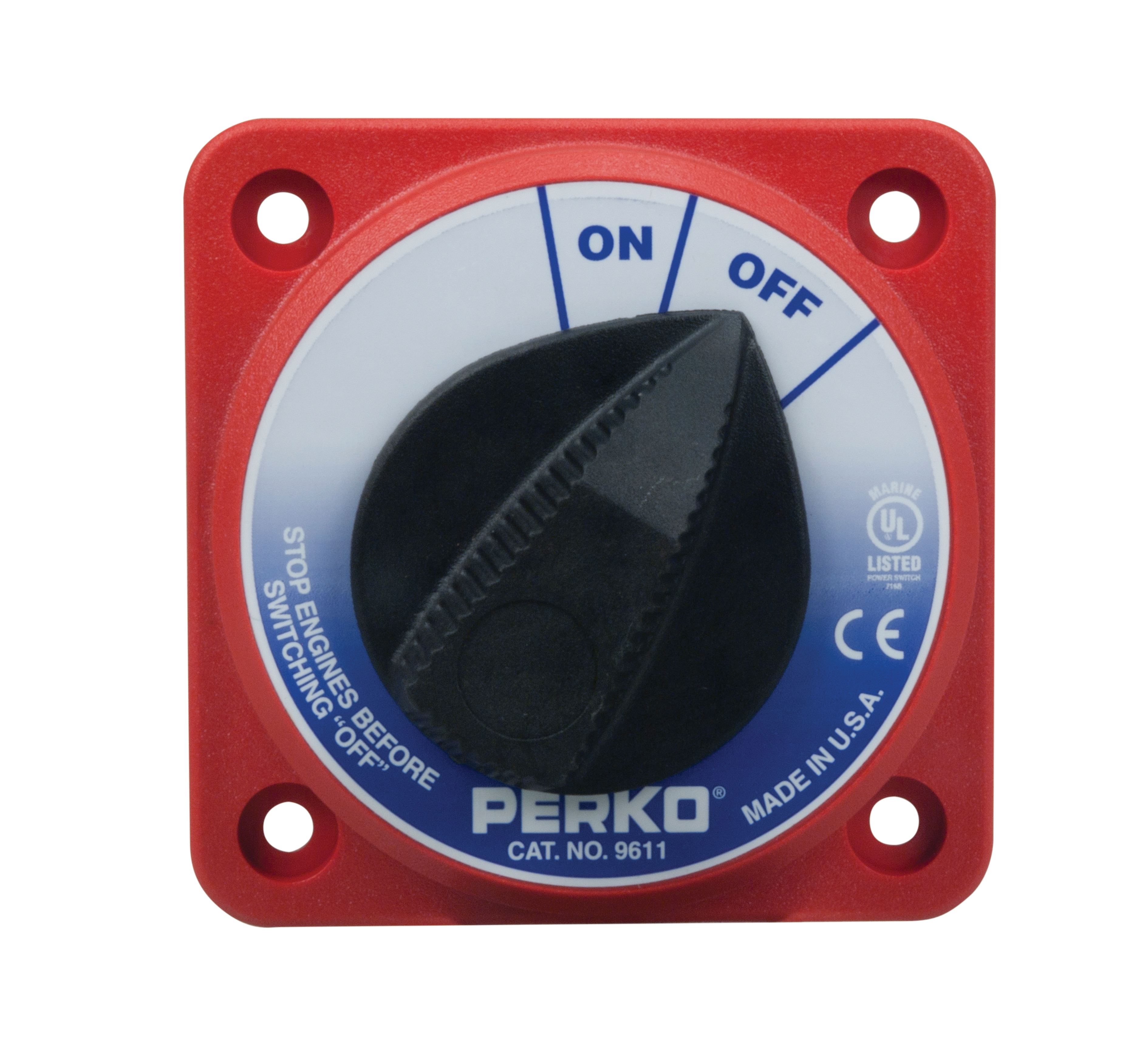 Perko 9611 Series battery On-Off switches use the same traditional Perko footprint as the 9601 Series. This makes for easy installation. These switches can be mounted in numerous locations. And as ignition protected switches, they can be installed in the engine rooms of gasoline powered boats.