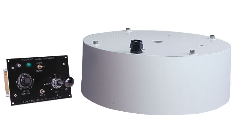 XR Series lights can be controlled using conventional mechanical lever gear controls or upgraded to remote distant electric control systems. The standard length for lever gear systems is 72 inches. Custom lengths are available. In either case searchlight movement is 380° horizontal and 70° vertical.